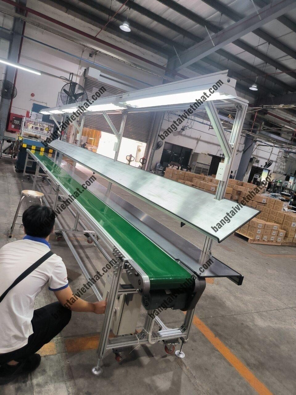 Băng tải là một hệ thống được sử dụng phổ biến trong các nhà máy sản xuất giúp gia tăng năng xuất và tối ưu các công đoạn. Để tối đa hóa lợi ích của hệ thống băng tải, chúng tôi liên tục cải tiến công năng của nó, đặc biệ là việc phát triển loại băng tải kết hợp bàn thao tác đã trở thành một giải pháp hiệu quả và tiên tiến. Hệ thống này cung cấp sự tự động hóa và tính linh hoạt trong việc vận chuyển và xử lý hàng hóa, giúp nâng cao hiệu suất sản xuất, tiết kiệm thời gian và giảm chi phí lao động.