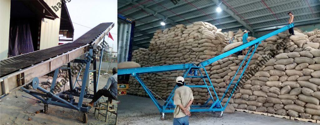 + Băng tải được thiết với kết cấu vững chắc, đạt độ bền lớn, chịu được tải trọng nặng. Với thiết kế nghiêng phù hợp cho việc vận chuyển bao trong nhà kho.