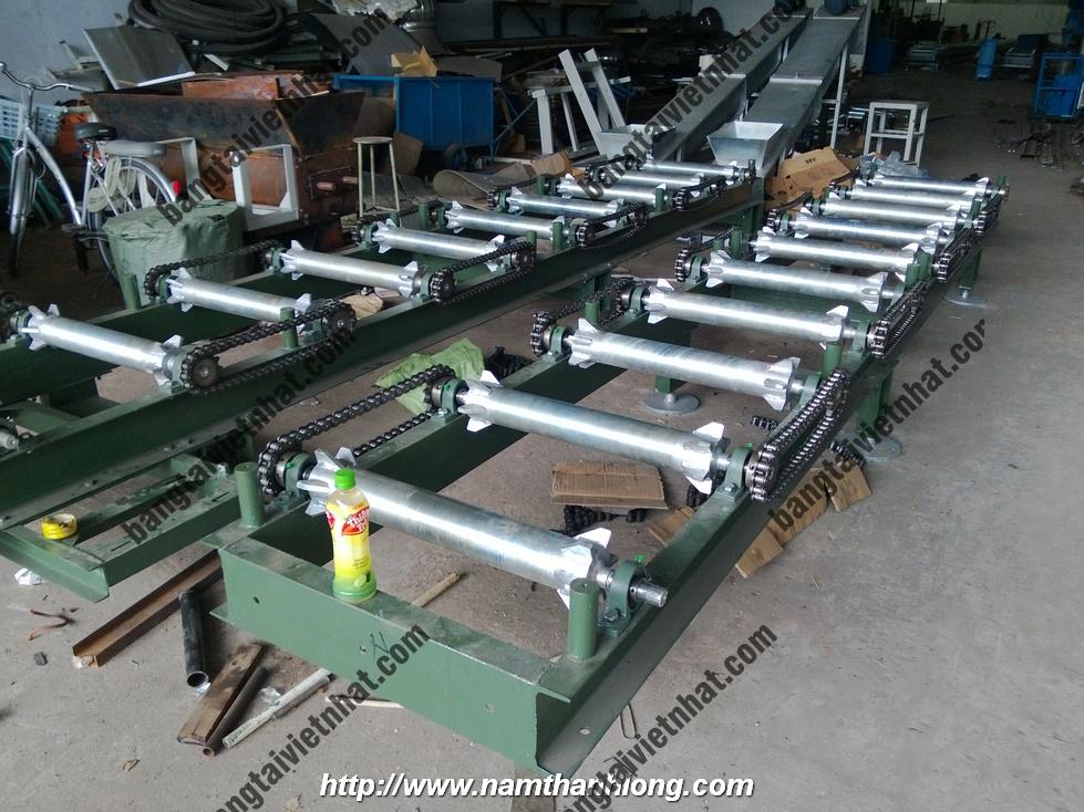 + Băng tải con lăn xích hoạt động dựa trên nguyên lí truyền tải xích tải dẫn động con lăn xích, truyền tải được tải trọng lớn, tốc độ tải nhanh, vận hành êm ái.