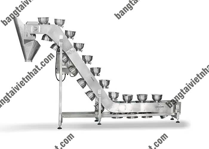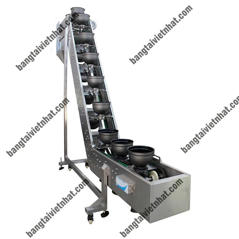 - Băng tải gầu đưa vật liệu lên cao theo phương thẳng đứng với hiệu suất cao lại tiết kiệm năng lượng.
