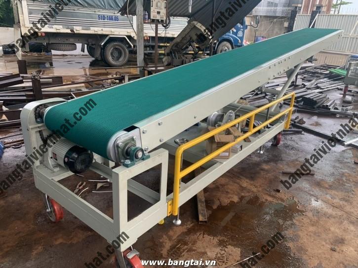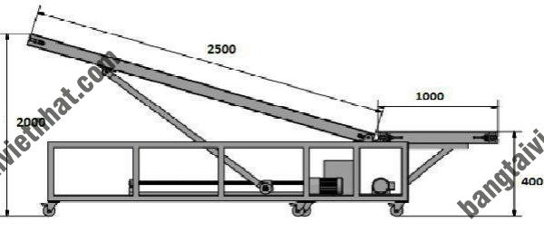 + Dựa truyên nguyên lí truyền động momen từ động cơ đến dây belt pvc nhám. Truyền tải các sản phẩm dạng thùng , khối , hộp lên xe hoạc lên các vị trí cao hơn mặt đất.