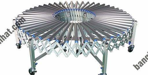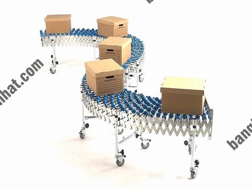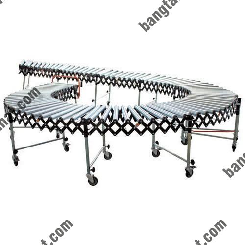 Băng chuyền con lăn xếp gọn thích hợp với dây chuyền đóng gói, bao, hộp, thùng carton, pallet. Loại băng tải này có thể kéo dài hoặc thu ngắn hay được thao tác để tạo thành đường cong tùy ý phù hợp với các dạng địa hình trong các nhà máy công nghiệp.