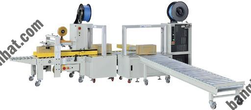 + Một hệ thống đóng gói tự động bao gồm máy dàn thùng tự động, máy đóng đai tự động và băng tải con lăn xích sẻ giải quyết bài toán đóng gói tự động nhanh chóng, dễ dàng chính xác và giảm chi phí, giảm nhân công lao động.