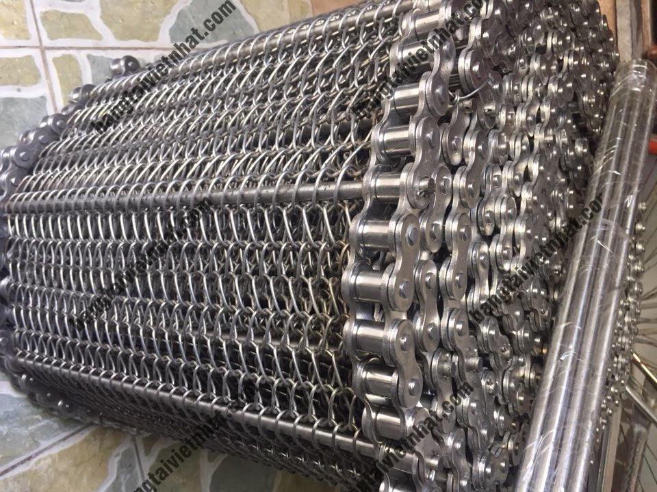 - Băng tải xích inox: Loại này gồm các module xích làm bằng thép không gỉ. Băng tải xích inox có khả năng chống trầy xước cao, chịu được nhiệt độ khắc nghiệt và môi trường ăn mòn, dễ dàng vệ sinh. Chúng thường được sử dụng trong các ngành công nghiệp thực phẩm, đồ uống và y tế.